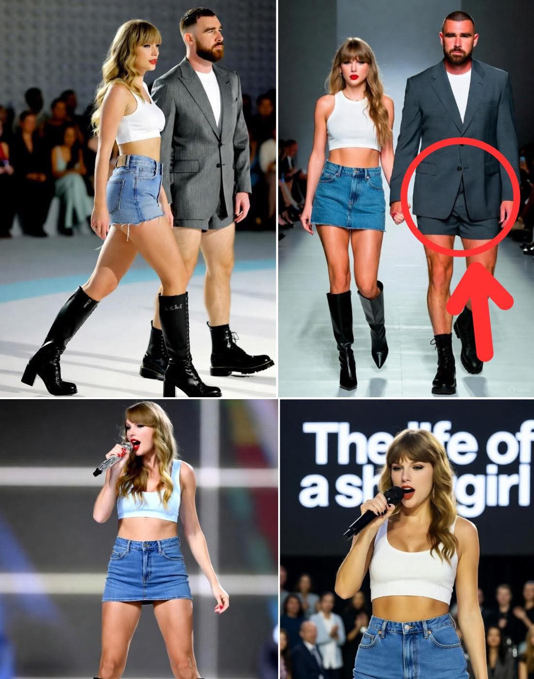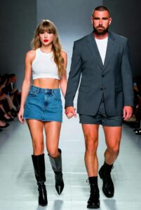 Then, just when fans thought the moment had peaked, the lights dimmed — and out walked Taylor and Travis together. What followed was something no one saw coming: a surprise runway walk that left the crowd screaming. Taylor held onto Travis’s arm as they strutted confidently down the runway, smiling, laughing, and posing as flashes exploded around them. It was the definition of a “power couple moment.”