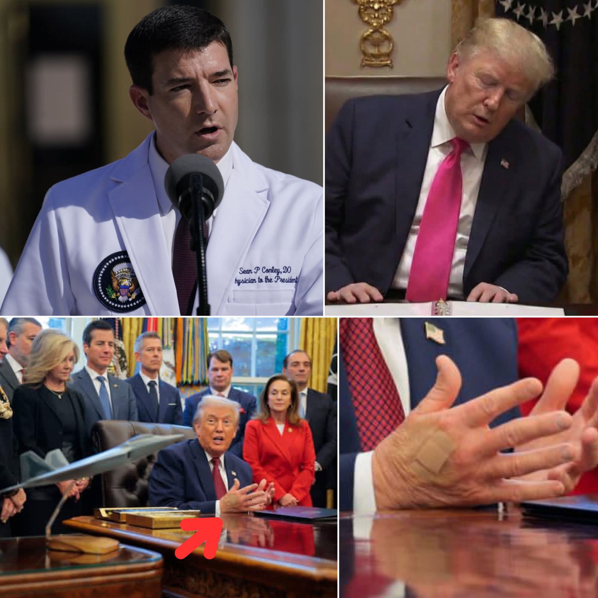 The political world was thrown into confusion and quiet panic late last night after a White House doctor finally broke his silence and revealed what he called a “secret diagnosis” connected to Donald Trump’s recent public appearances. For weeks, observers online had been whispering and speculating after new photos surfaced showing Trump with Band-Aids wrapped tightly around his hand, something he tried to hide but couldn’t fully escape from the cameras. What looked like nothing at first suddenly became part of a much bigger story the moment the doctor stepped forward and decided the public “deserved to know what was actually going on.”