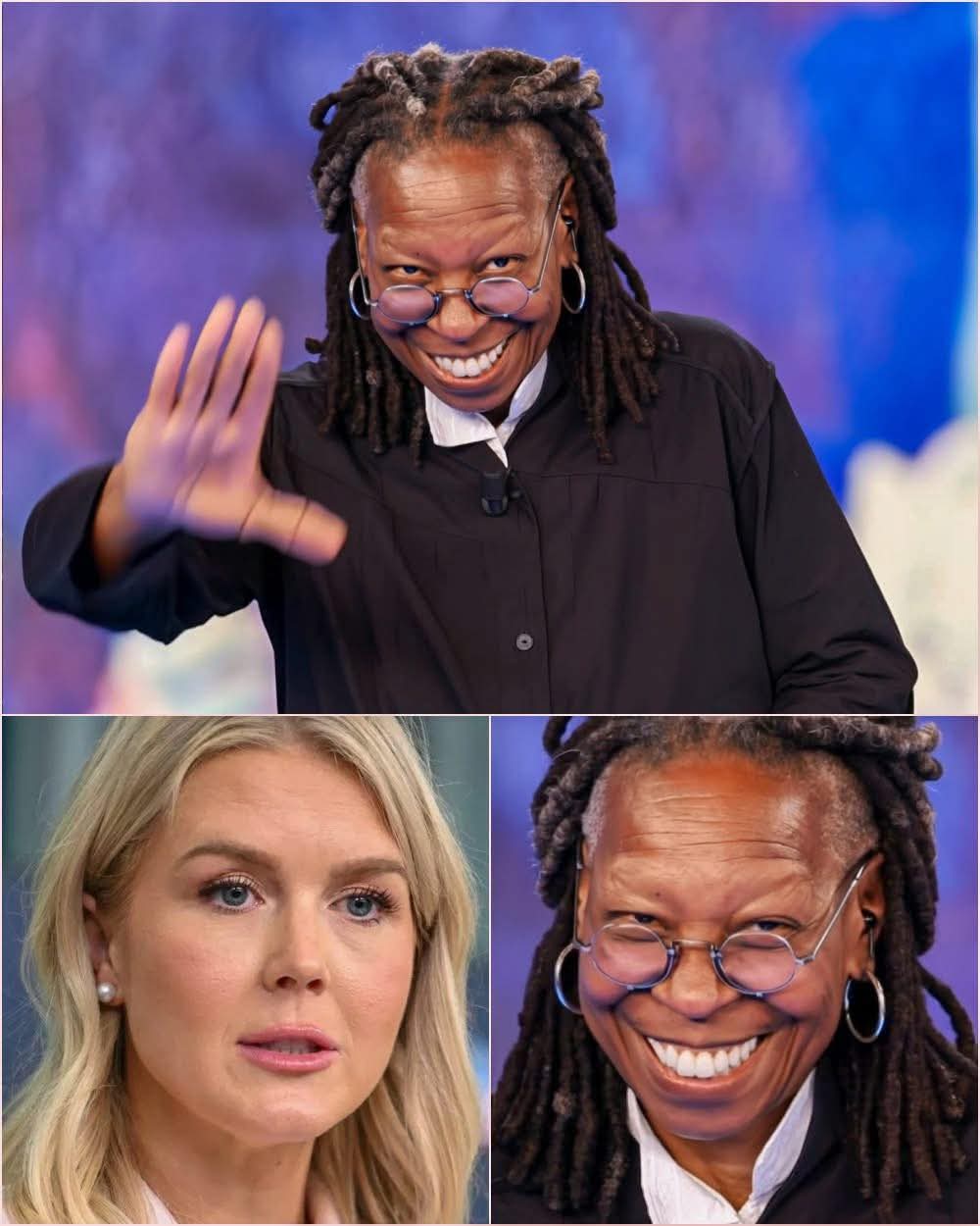 Seven seconds later, just one sentence, not loud and not long, was spoken by Whoopi like a clean, cold, razor-sharp cut, leaving no space for resistance, a strike of intellect with no leniency. The atmosphere shifted immediately. No way out. No chance to respond. The studio exploded. Karoline froze. Her mouth stammered without sound. Her hands didn’t know where to go. Her eyes darted around in panic. Her whole body lost control. Too terrifying, too devastating.