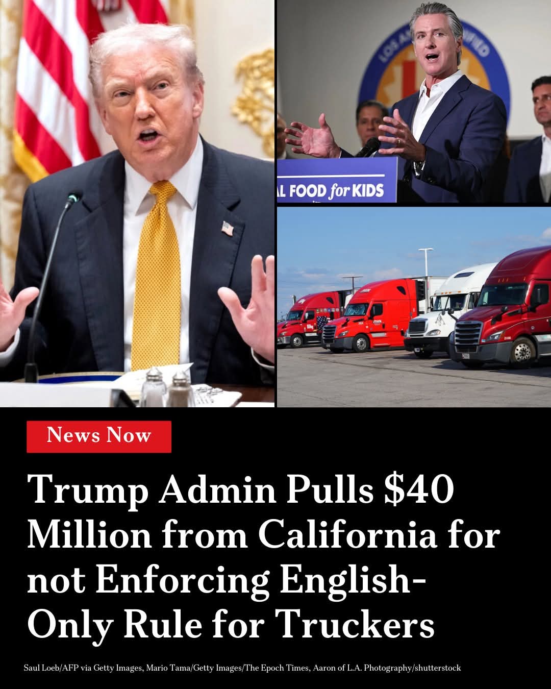 The U.S. Department of Transportation (DOT) has announced that it will withhold $40.6 million in federal funding from California, citing the state’s failure to fully enforce a rule requiring commercial truck drivers to demonstrate English proficiency. According to federal law, truck drivers must be able to read road signs, respond to official inquiries, and complete paperwork in English. The DOT argues that California’s existing licensing system does not adequately ensure that all drivers meet these requirements. In response, California officials assert that their system already complies with federal standards. This penalty affects California’s ability to receive reimbursements for truck safety programs, including inspections and enforcement activities, under the Motor Carrier Safety Assistance Program.